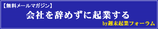 「週末起業って何ですか?」という初心者の方から、「週末起業の最新情報が気軽に欲しい」 という情報収集目的の方、そして「週末起業のノウハウを、いつでも学べるようにしたい」という週末起業実践者の方まで、広くご愛読いただいているのが、無料メールマガジン【会社を辞めずに起業するby週末起業フォーラム】です!